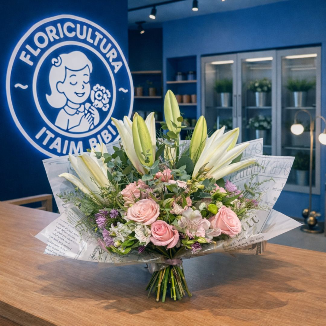 Flores do Campo – Grande com mix de flores coloridas, montagem artística e folhagens selecionadas.